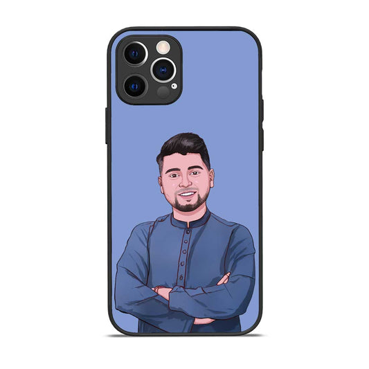 Personalized Mobile Back Cover with Photo Blue iPhone 12 Pro Back Case - Cartoonized From Image