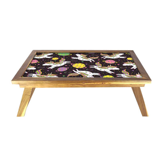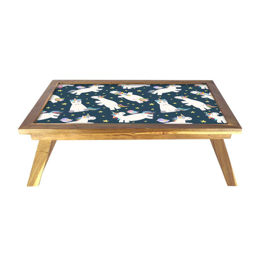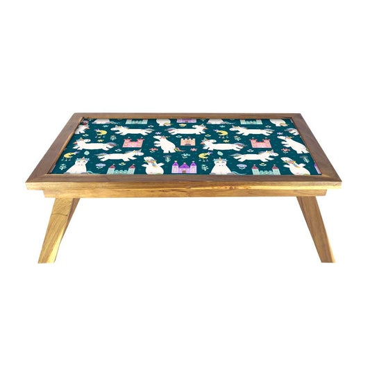 Folding Wooden Laptop Table for Home Bed Breakfast Tray - White Unicorn