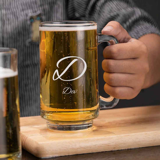Nutcase Custom Glass Beer Mugs-Engraved Beer Cup with Initial