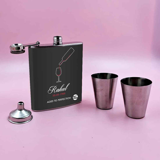 Nutcase Customised Hip Flask with 2 Shot Glasses - Premium Hip Flask Gifts Set