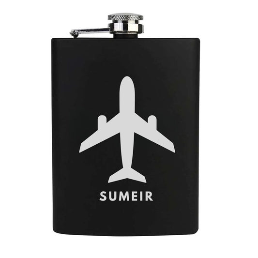 Personalized Pilot Hip Flask – Stainless Steel Flask with Airplane Engraving | Custom Gift for Aviators, Pilots & Crew