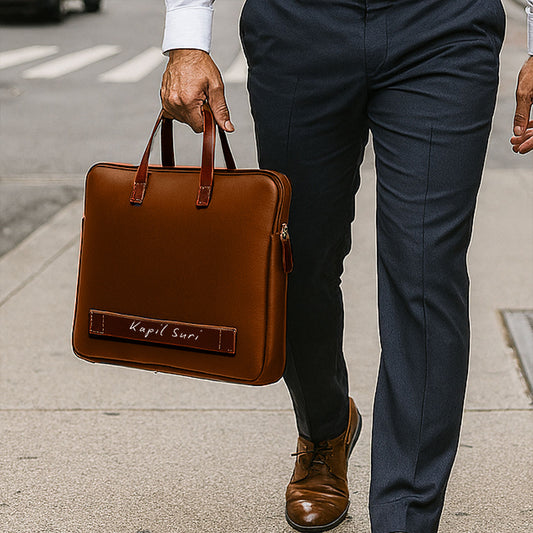 Custom Men’s Laptop Bag – Premium Brown Synthetic Leather Sleeve with Padded Compartment, Dual Handles & Zipper Closure | Fits Up to 15-inch Laptops