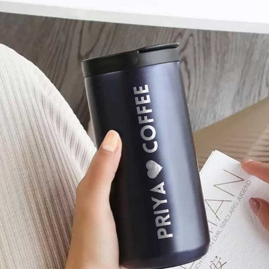 Personalized Travel Coffee Tumbler with Lid for Office Travelling Car Vacuum Flask (400 ML) - Monogram