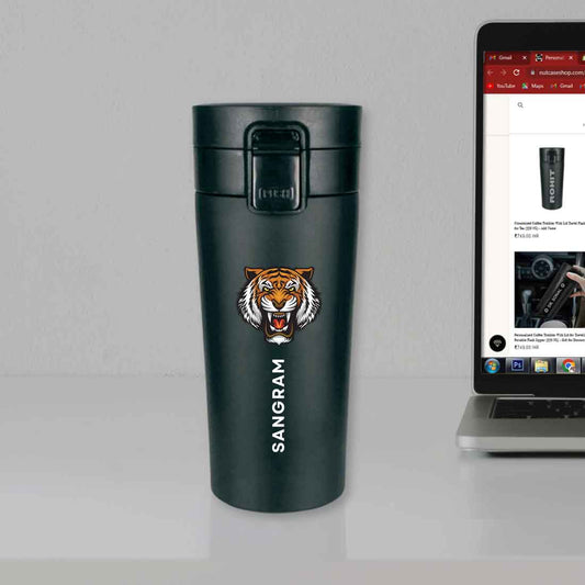 Nutcase Customized Stainless Steel Travel Mug 380ml BPA Free Insulated Coffee Tumbler- Tiger