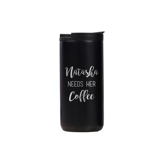 Personalized Travel Tea Mug with Lid Name Engraved Stainless Steel Flask (400ML)