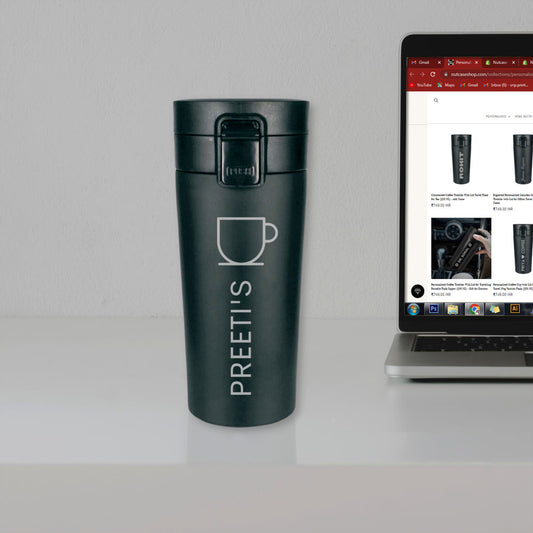 Customized Small Coffee Tumbler for Travelling with Name Engraved Design (350 ML) - Coffee