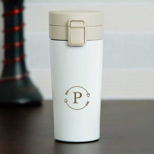 Personalised Coffee Cup With Lid for Office Travelling Portable Flask Sipper (380 ML) - Monogram