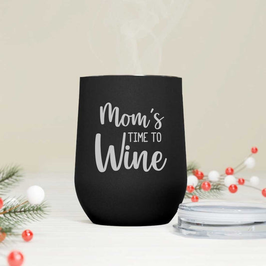 Designer Steel Travel Coffee Flask Mug With Lid Gift for Mothers Day Gifts - Mom's Time To Wine