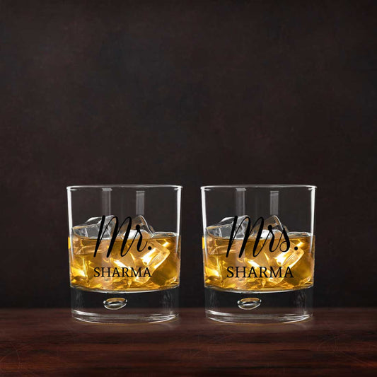 Personalized Mr and Mrs Whiskey Glasses Set of 2 for Couples Anniversary gifts