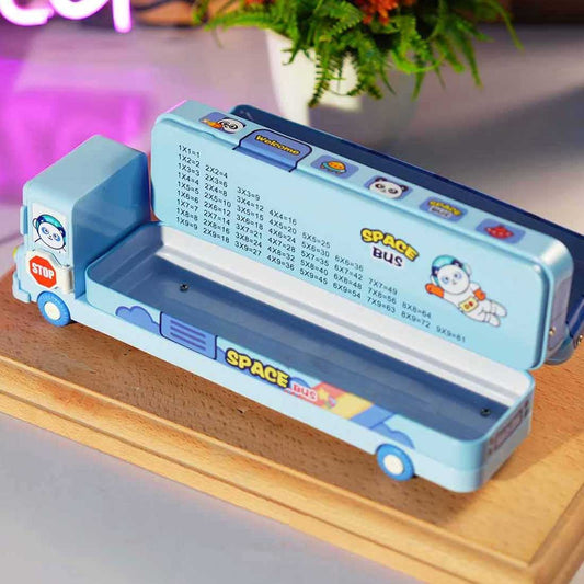 Personalized Bus Pencil Box for Kids - Space Bus with Built-in Sharpener