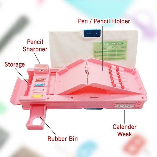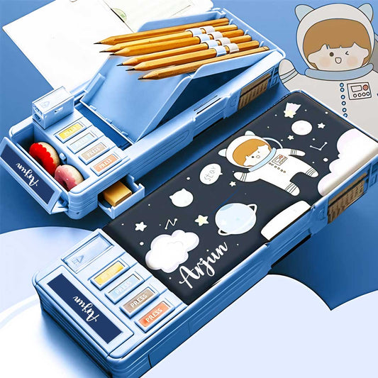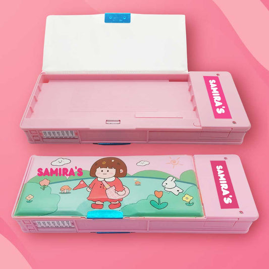 Personalised Pencil Box Switch Operated Multi-functional Compass Box for Kids with Press buttons