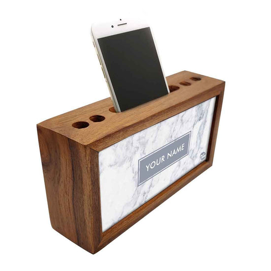 Custom Wood desktop organizer - White Marble Pastel