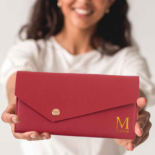 Customized Ladies Wallet-Stylish Envelope Clutch with Name and Initial