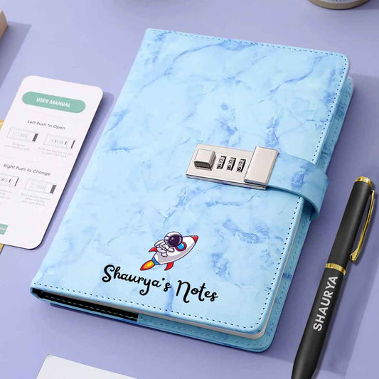 Personalized Diary for Students with Password Lock Marble Design Diaries with Pen - Astronaut