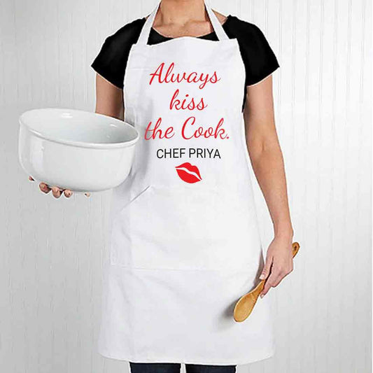 Custom Apron with Pockets and Name for Kitchen - Kiss The Cook