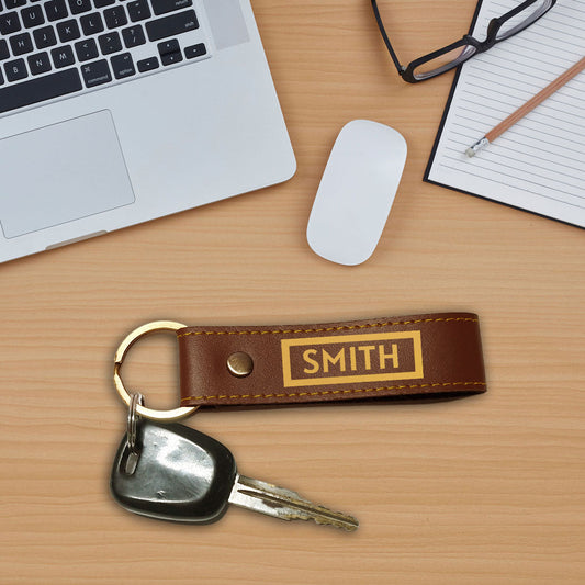 Personalised Vegan Leather Key Chain with Name Gifts for Men - Box Name