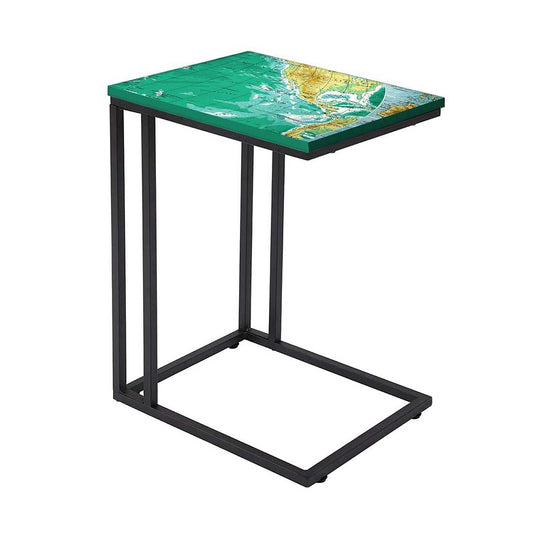 Designer Black C Shaped Table - Earth Map