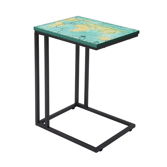 Nutcase Design C Shaped Side Table for Laptop Work on Sofa Couch-Study Breakfast Snack Serving End Tables -_Sky Blue Map Design