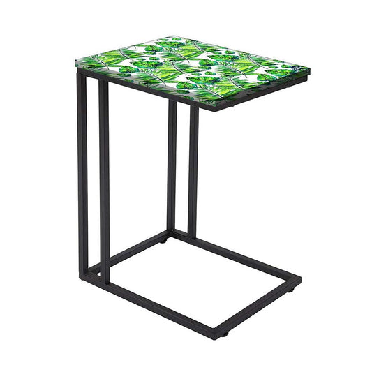 C Shaped End Table For Sofa - Green Tropical Leaf