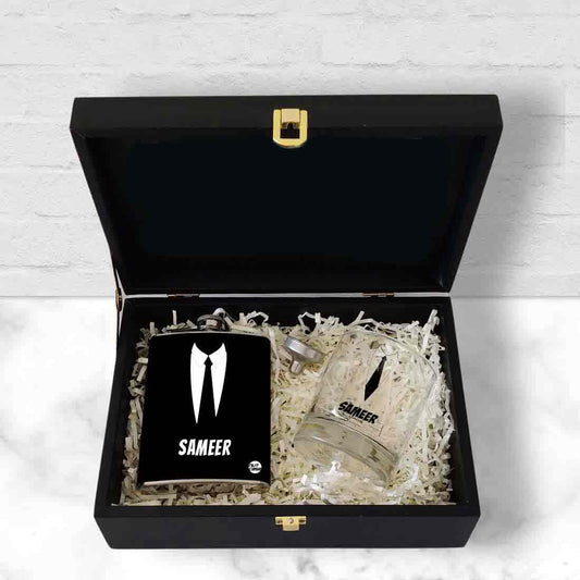 Personalized Whiskey Glass Hip Flask Gift Set Box - Suit Up