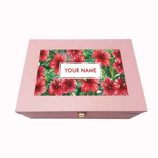 Personalized Gift Box for Her Add Your Name - Pink Hibiscus