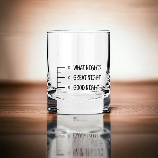 Whiskey Glasses Liquor Glass- Anniversary Birthday Gift Funny Gifts for Husband Bf - GOOD NIGHT GREATE NIGHT WHAT NIGHT?