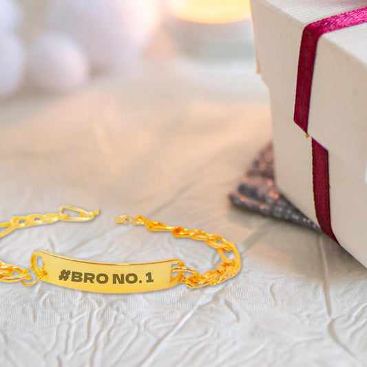 Raksha Bandhan Gift Ideas For Brother Stylish Metal Custom Bracelet-Black Rhodium/Gold Plated - #Bro.No 1