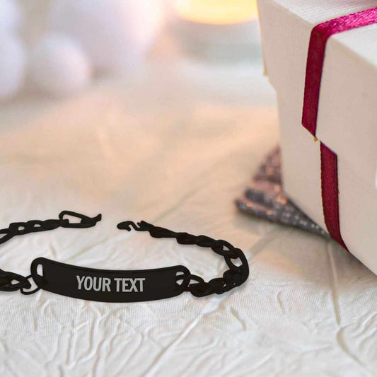 Personalized Raksha Bandhan Gifts For Brothers Custom Rakhi Gift Stylish Metal Bracelet-Black Rhodium/Gold Plated With Customized Text