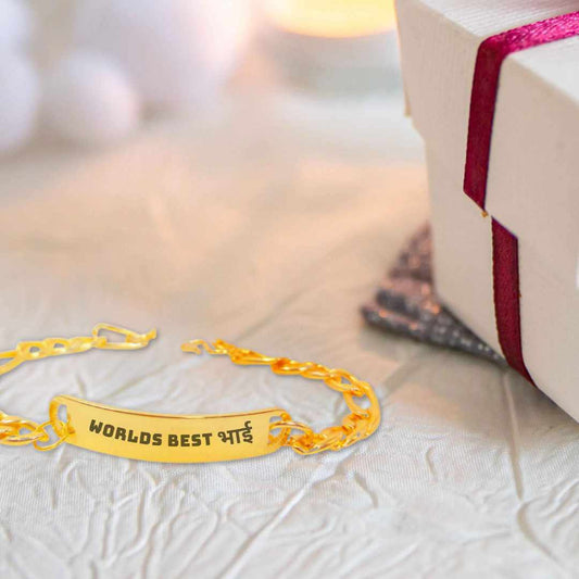 Gift for Raksha Bandhan Fashion Bracelet With Engraving Unique Rakhi Gifts For Brother -Black Rhodium/Gold Plated -Worlds best भाई