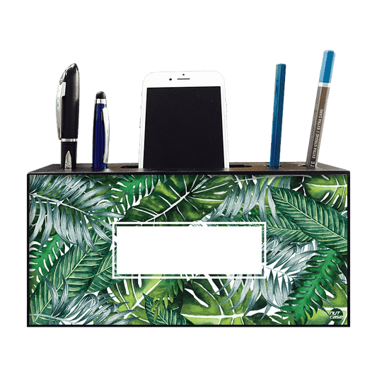 Stylish Customized Pen Stand Holder - GREEN LEAVES