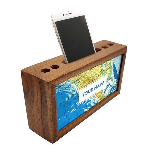 Personalized Solid Wood desk organizer - Vintage Maps Globe