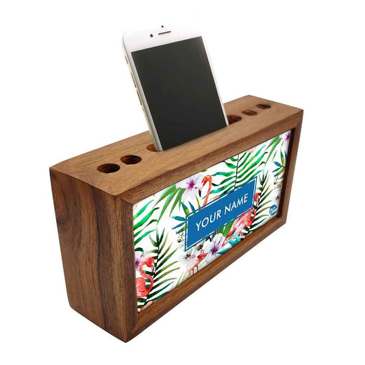 Personalized Wood desktop organizer - White Hibiscus with Flamingo