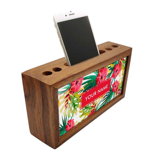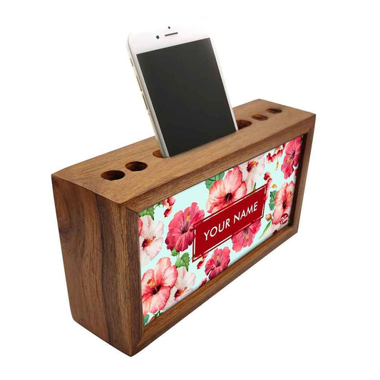 Personalized Wooden Stationery Organiser - Hibiscus Flower