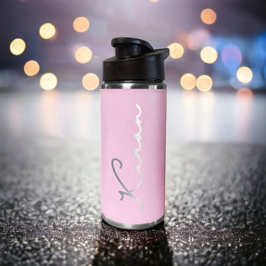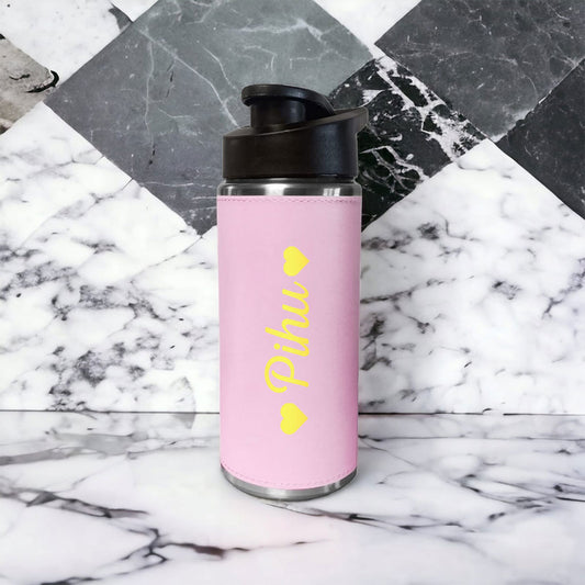 Customized Water Bottles With Names Stainless Steel PU Leather Pink Sipper Bottles For Girls