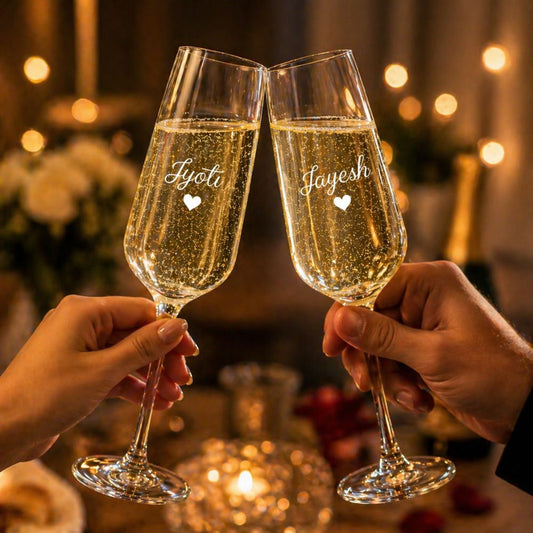Personalized Engraved Champagne Flutes for Couple Set of 2 - Premium Champagne Glasses