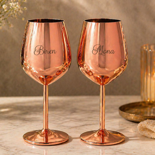Nonbreakable Wine Glasses Copper Finish Stainless Steel Goblets with Name Engraved