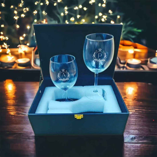 Personalised Wine Goblet Engraved with Initial - Premium Wine Glasses