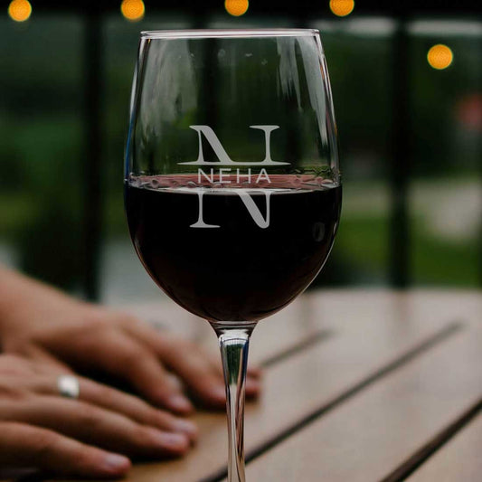 Customized Wine Glass - Engraved Red White Wine Glass - Monogram