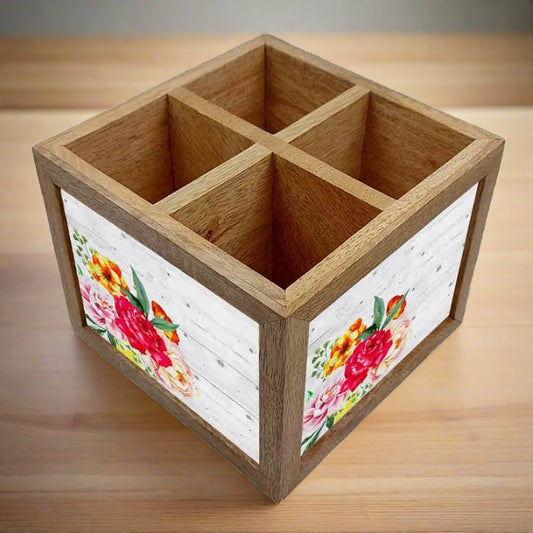 Watercolor FlowerCutlery Holder Stand Silverware Caddy Organizer