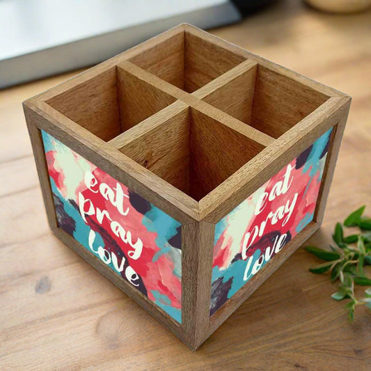 Wooden Spoon Holder Cutlery Stand for Kitchen Organizer - Eat Pray Love
