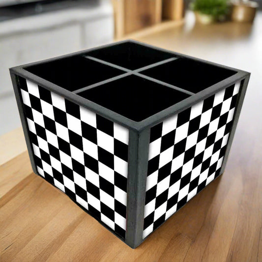 Classy Wooden Cutlery Holder for Dinning Table Organizer - Black Marble