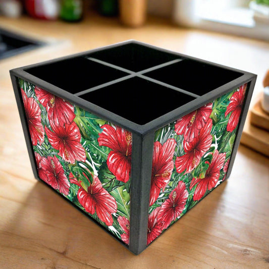 Hibiscus FlowerCutlery Holder Stand Silverware Caddy Organizer