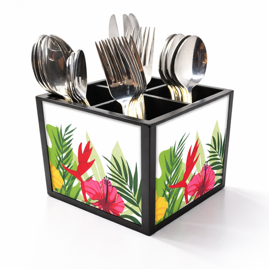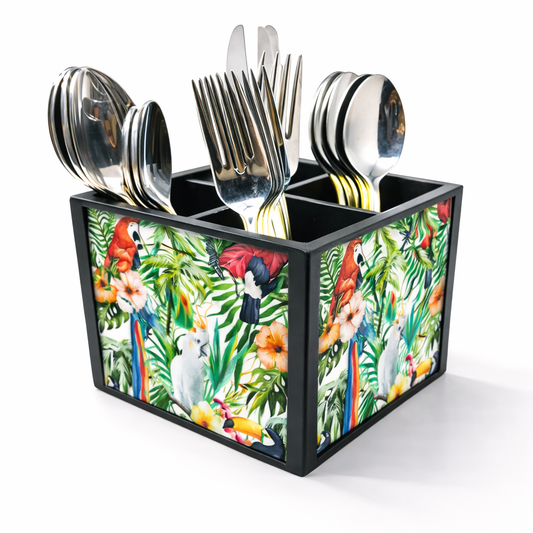Parrot With LeavesCutlery Holder Stand Silverware Caddy Organizer