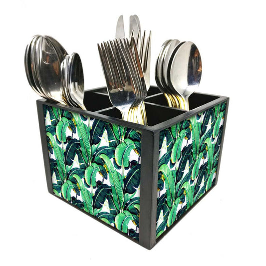 Designer Black Cutlery Holder for Spoons, Forks & Knives - Banana Leaves