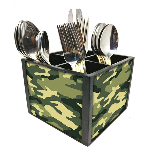 wooden cutlery holder Stand for Spoons, Forks & Knives-Army Camo