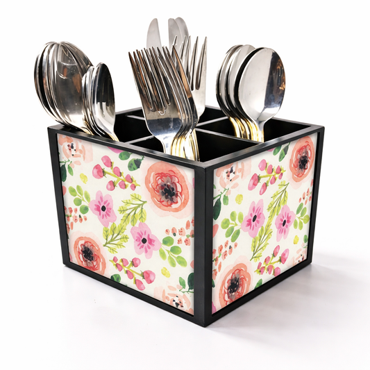 Spoon and Fork Holder Cutlery Stand Silverware Caddy Organizer - Flower