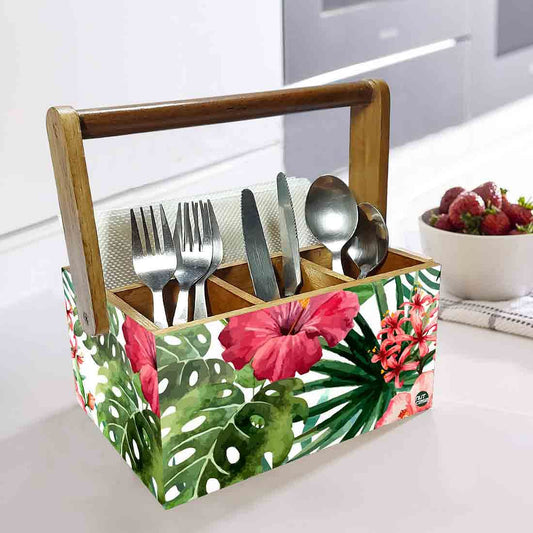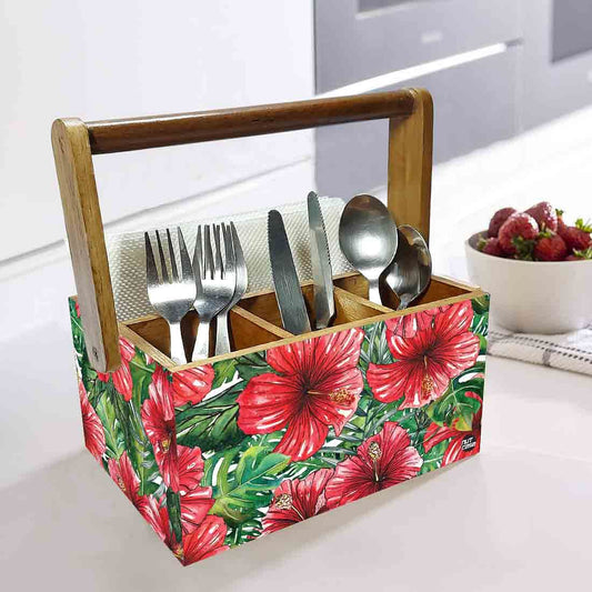Spoon Stand Wooden for Kitchen Organizer Knives Napkin Forks - Hibiscus