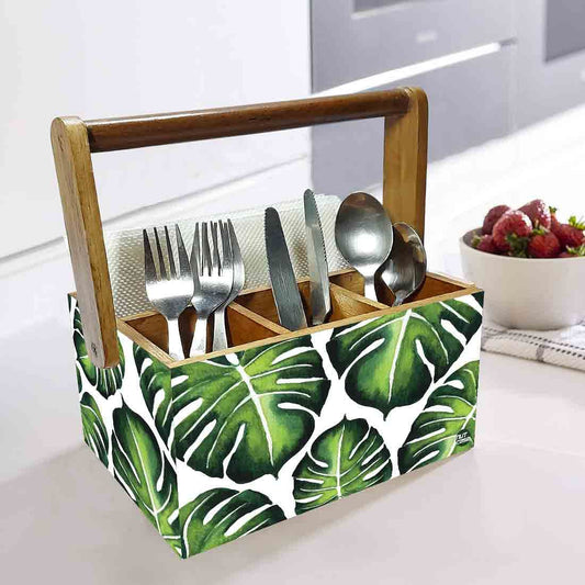 Spoon and Fork Holder for Restaurant With Handle - Monstera Leaves