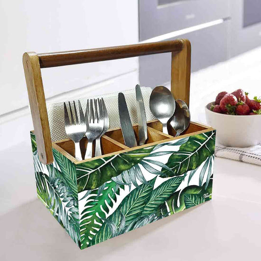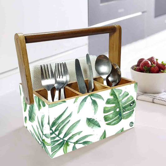 Cutlery Box for Storage Wooden Holder With Handle - Drops Leaves