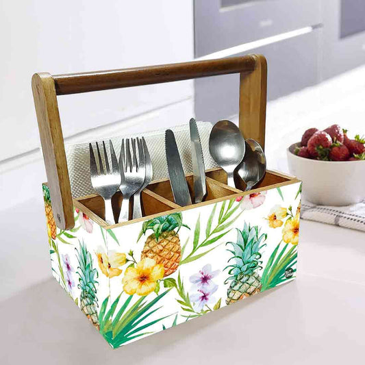 Cutlery Holder With Handle for Dining Table Spoons Tissue Organizer - Pineapple
